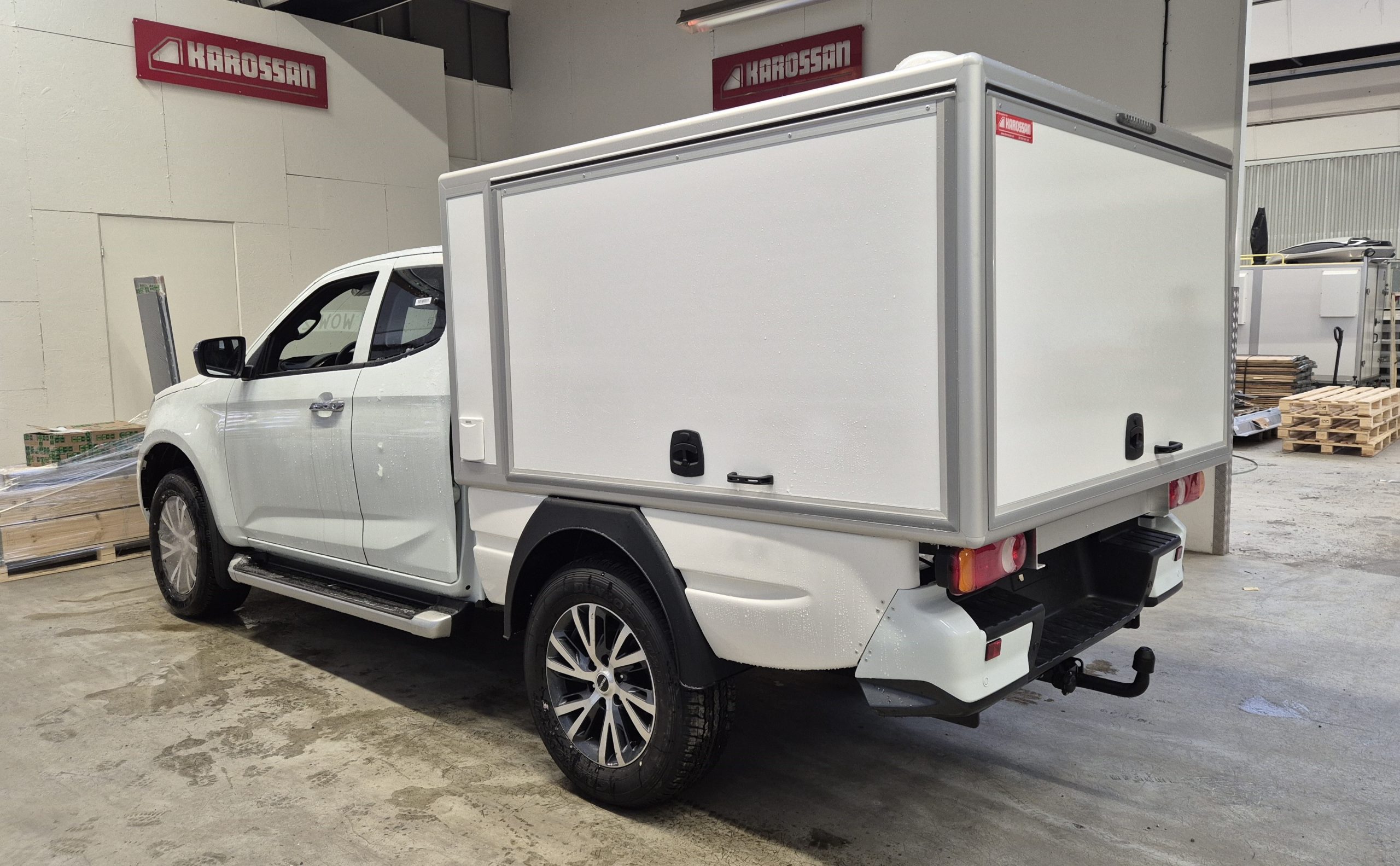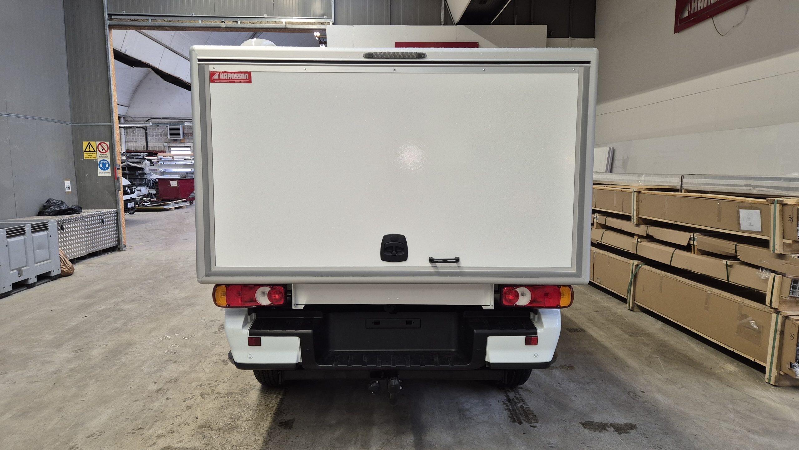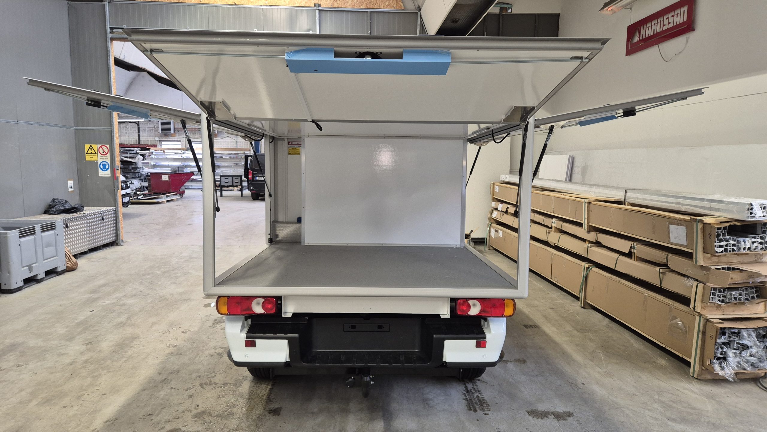 Lättviktslaminat för att öka lastförmågan, centrallås, stege, varning för öppen lucka, lackering